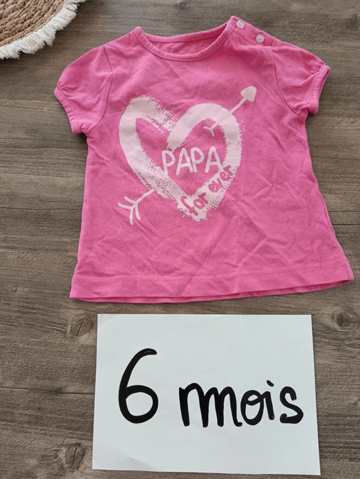T-shirt rose avec inscription papa forever Taille 6 mois Marque kitchoun Très bon état général pas de trou ni de tâches porter une fois N'hésitez pas à cliquer sur le lien de dessous, vous y trouverez ma liste de vêtements de la même taille ⤵️ 📌#angeelle42_Fille_6mois Réduction en achetant plusieurs articles ☺️