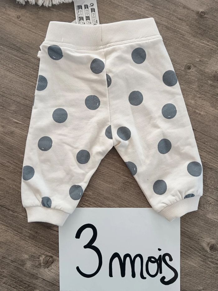 🌞 pantalon neuf crème à pois gris 3 mois - photo numéro 2