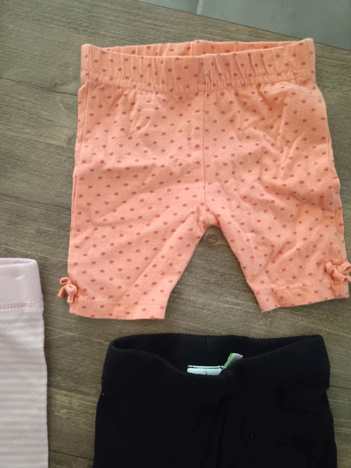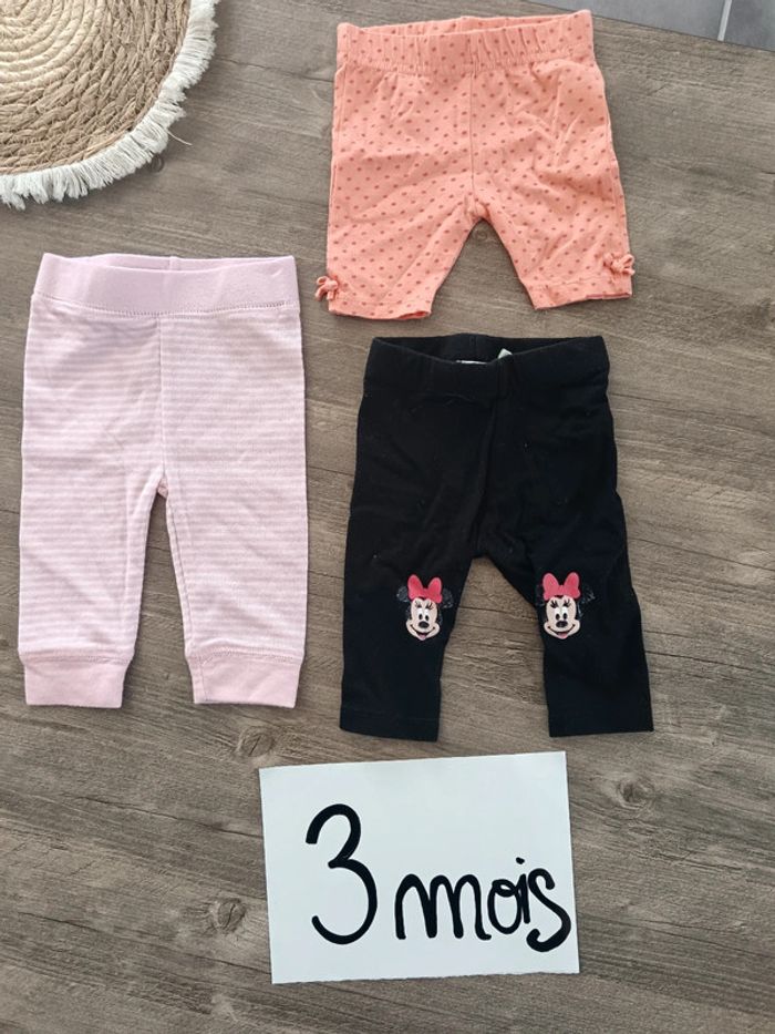 Lot de deux pantalons 1 rose a rayures blanches 1 noir avec motifs mini legerement effacer voir la photo marque Disney Baby 1 pantacourt orange à point rose de nœud sur le côté des jambes Marque baby Gémo Taille 3 mois Très bon état général pas de trou ni de tâches. N'hésitez pas à cliquer sur le lien ci dessous, vous y trouverez ma liste de vêtements de la même taille ⤵️ 📌#Angeelle42_Fille_3mois Réduction en achetant plusieurs articles ☺️