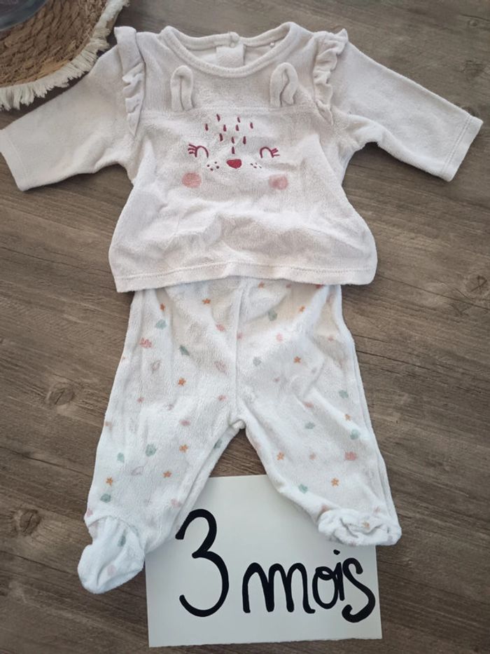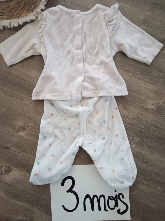 Pyjama 2 pièces s'accroche avec pression Le haut s'attache avec pression le bas taille élastique Marque orchestra Taille 3 mois Très bon état général pas de trou ni de tâches N'hésitez pas à cliquer sur le lien ci dessous, vous y trouverez ma liste de vêtements de la même taille ⤵️ 📌#Angeelle42_Fille_3mois Réduction en achetant plusieurs articles ☺️