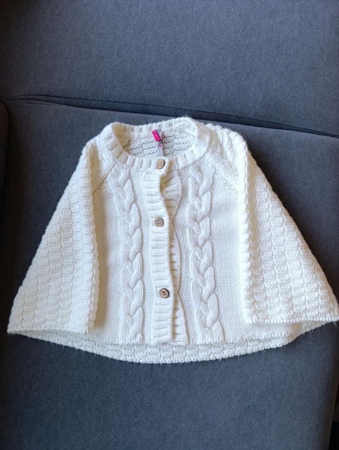 Beau poncho en maille. Petits trous sur les côtés pour passer les bras. Fermeture par boutons. Taille 12 mois. Très bon état D'autres articles enfant à vendre dans mon dressing (fille jusqu'à 12 ans, garçon jusqu'à 3 ans). N'hésitez pas à aller les consulter et à faire un lot 😉 Utilisez le filtre pour faciliter vos recherches 👍