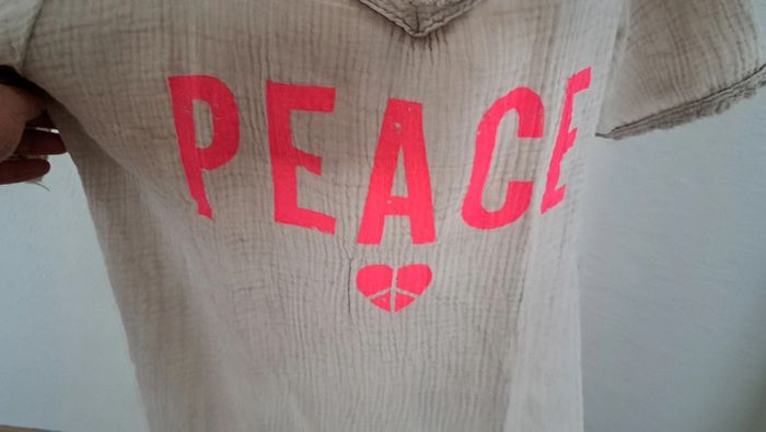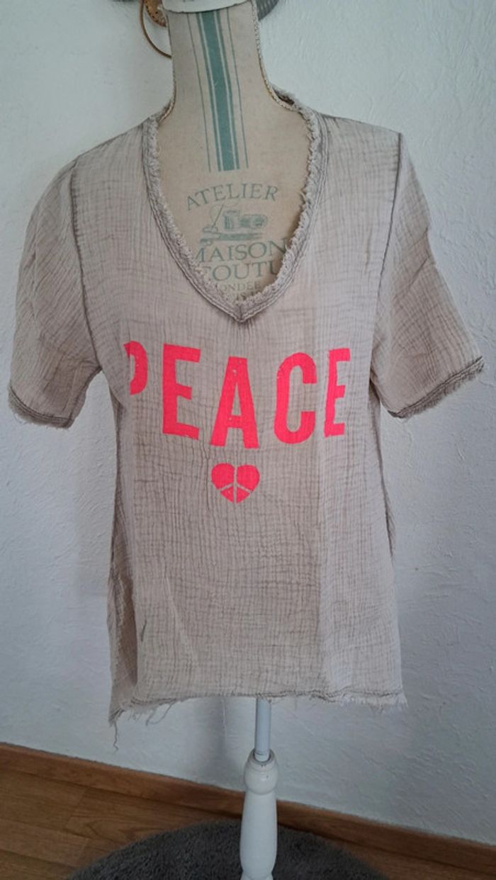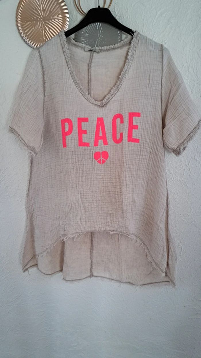T-shirt Taille unique Je n accepte aucune offre Sur le dessin effet usé . Ce n est pas un défaut, c est d origine T-shirt effet destroy (fil qui pend) Longueur devant 66 cm. Derrière 86 cm Mesure aisselle 54 cm Mesure épaule 40 cm