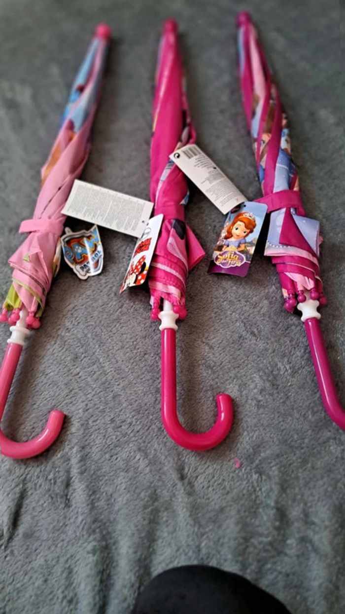 Je répond pas aux offres Aucune offre ne sera acceptée Lot de 3 parapluies Mis dimensions en photo Jamais utilisé Peux être vendu à l unité à 5e