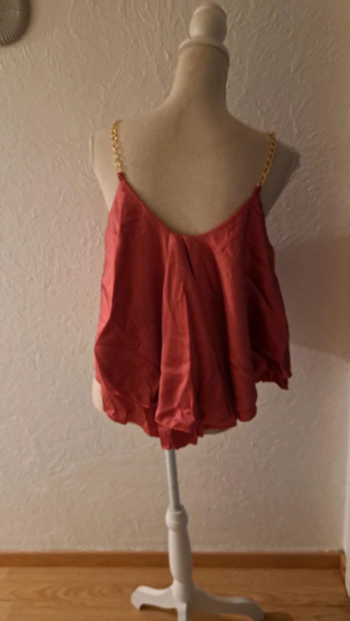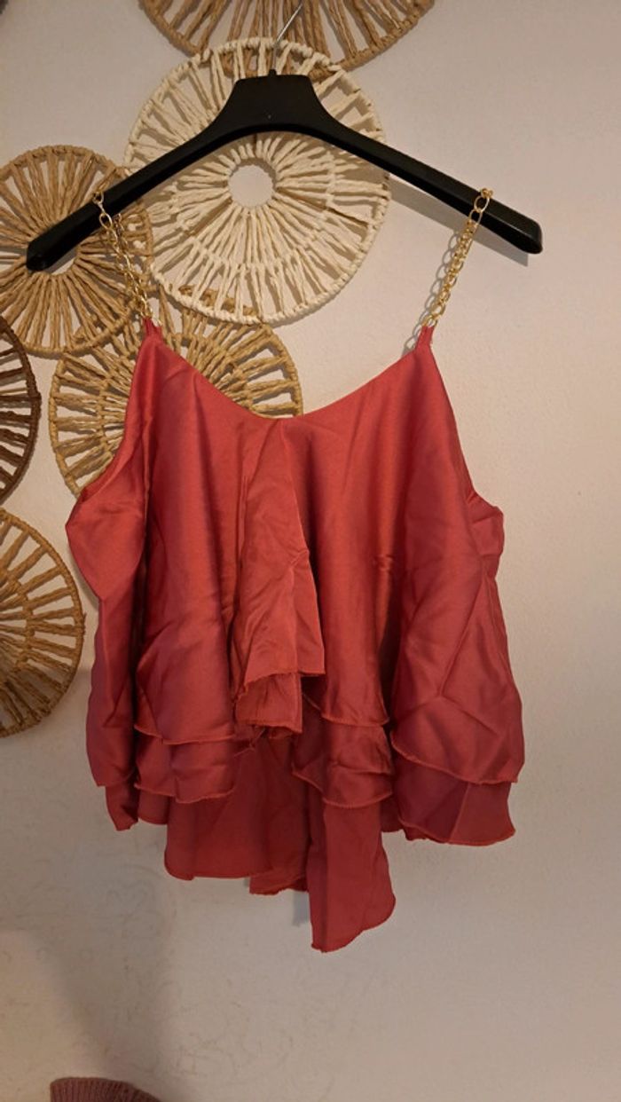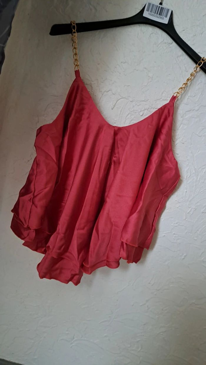 Top court Taille unique Tissu effet satin Couleur framboise Jamais mis Aucune offre ne sera acceptée Mis en photos le mesures