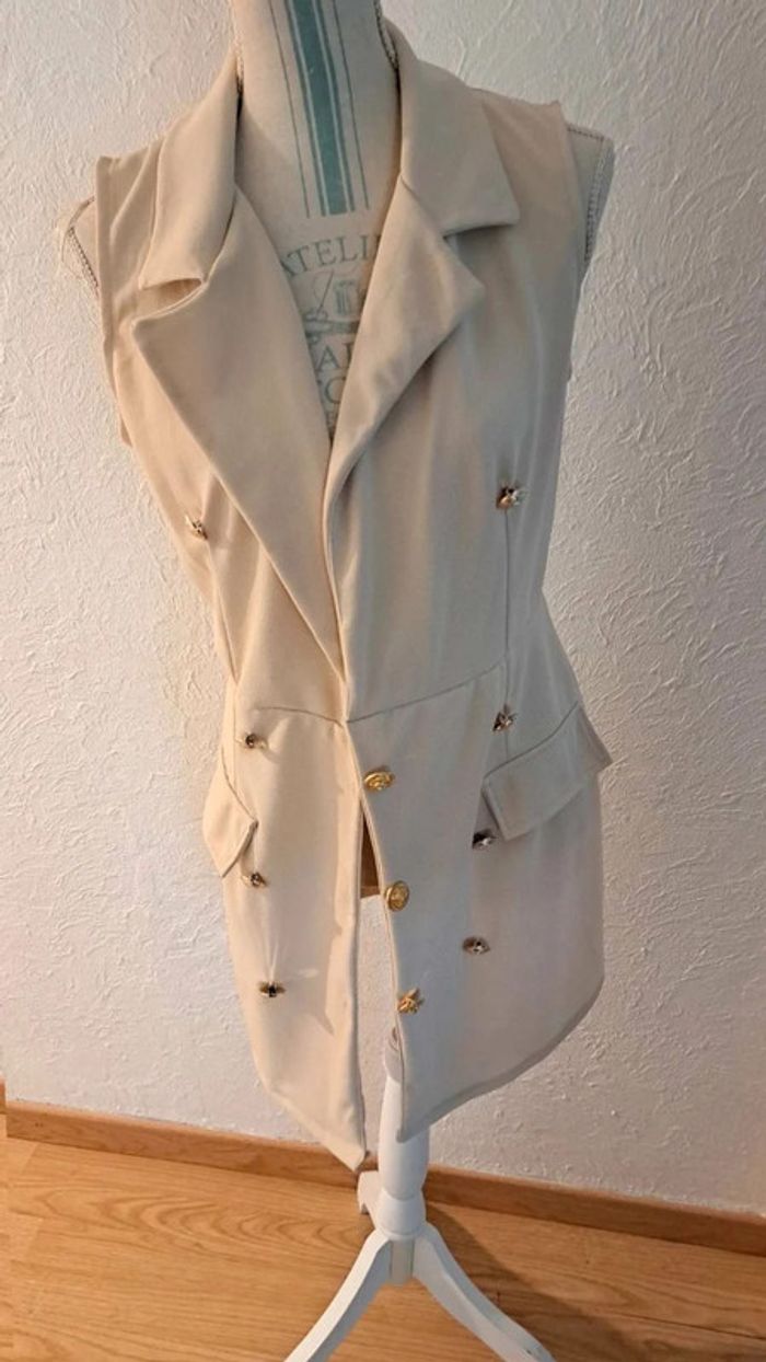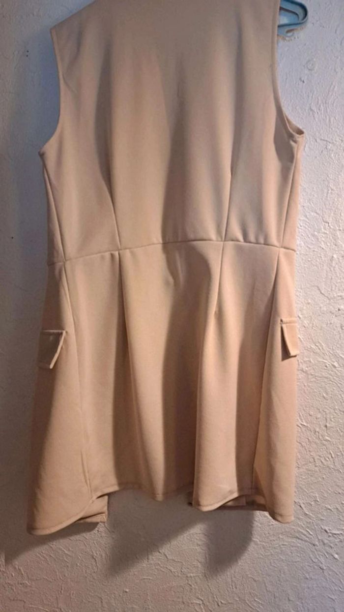 Veste ou robe Sans manche Taille unique Plus d étiquette Jamais mis J ai rajouté des boutons qui ne sont pas identique aux autres ( mis photos) pour avoir l ouverture plus large Longueur 80 cm Mesure aisselle à aisselle 42 cm Mesure épaules à épaules 35 cm