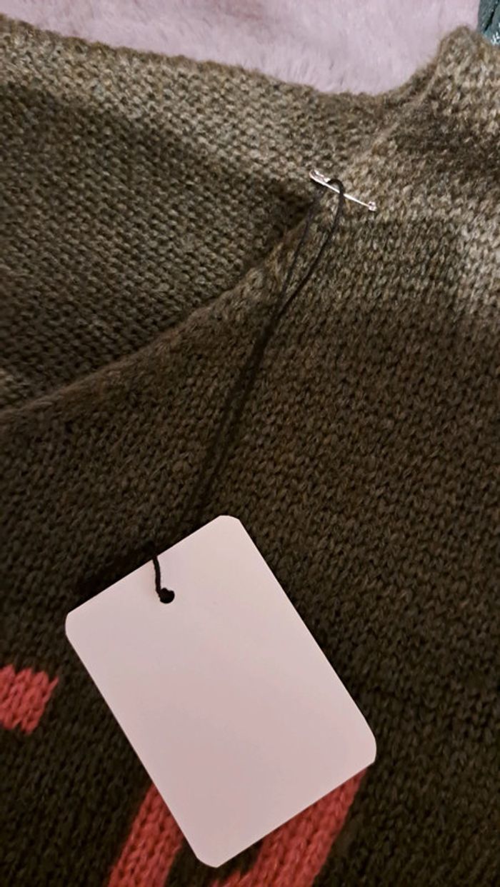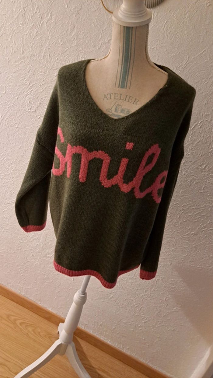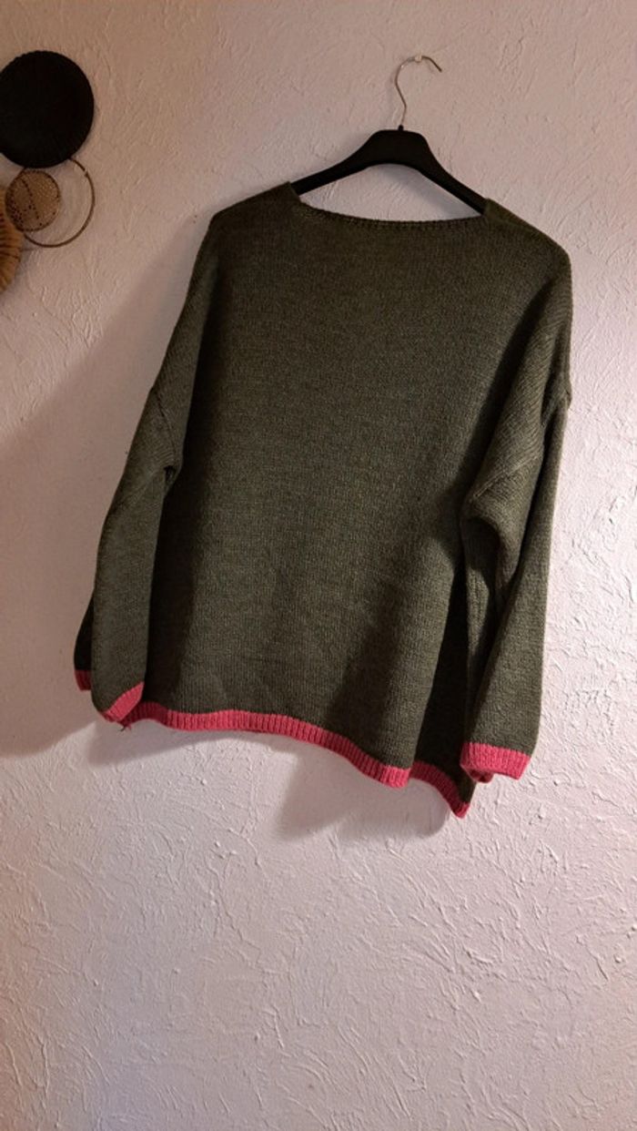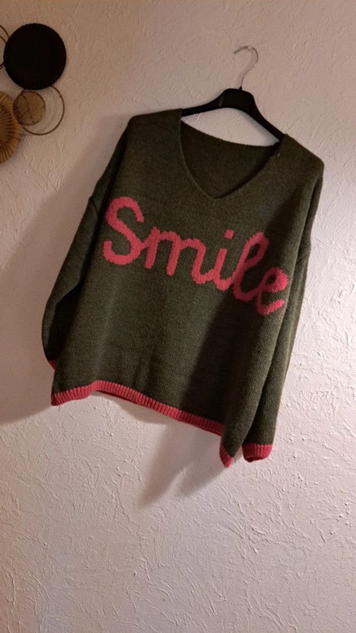 Promotion 14e à la place de 18e Pull Taille unique Jamais mis Je répond plus aux offres Pull oversize pour un 34/36 Peut aller du 34/42 petit 44 Longueur 61 cm Mesure aisselle 64 cm Mesure épaule 71 cm