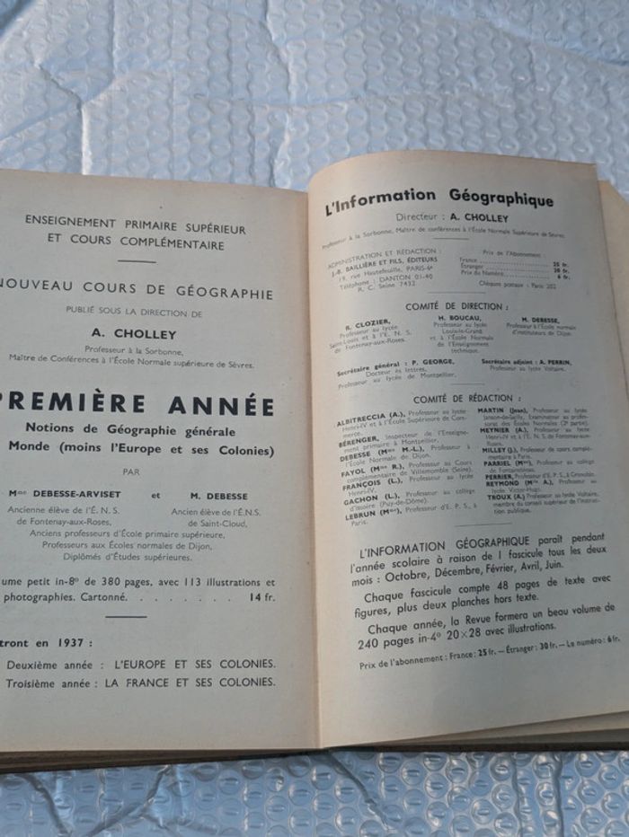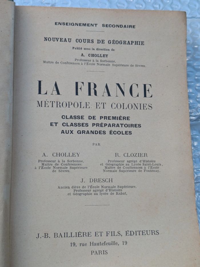 Géographie classes de premières et grandes ecoles 1936 edition bailliere et fils en etat correct