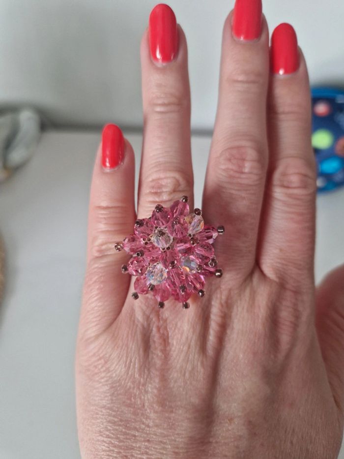 Bague en perles de swarovski rose - photo numéro 1