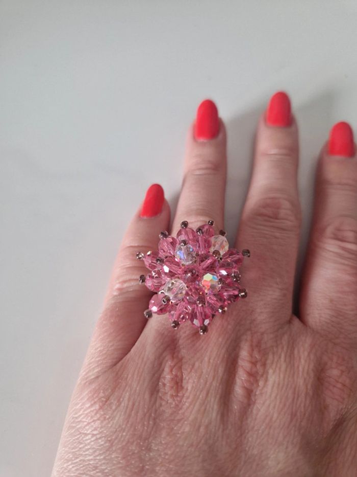Bague en perles de swarovski rose - photo numéro 4