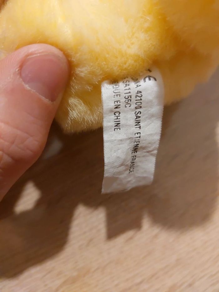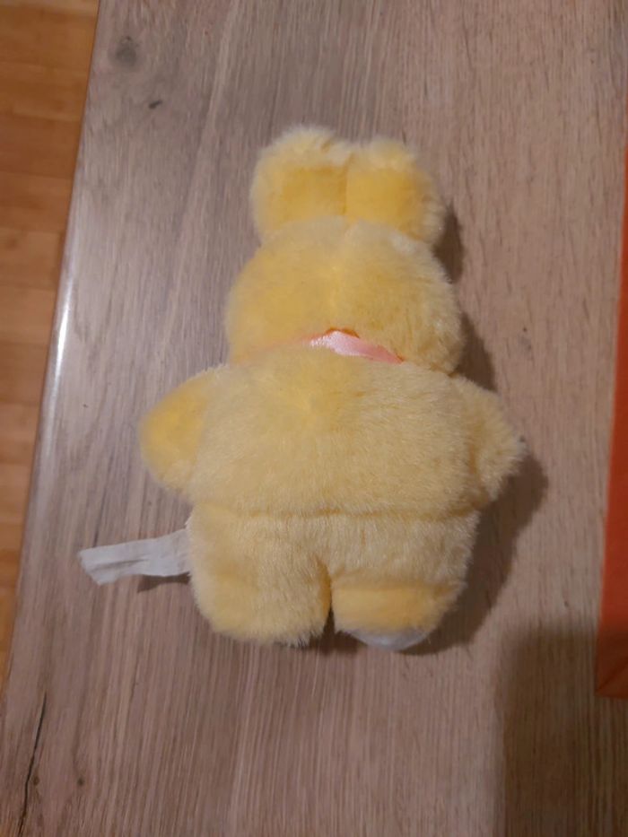 Peluche jaune lapin en bon etat taille 20 cm de longueur pour 10 cm de largeur