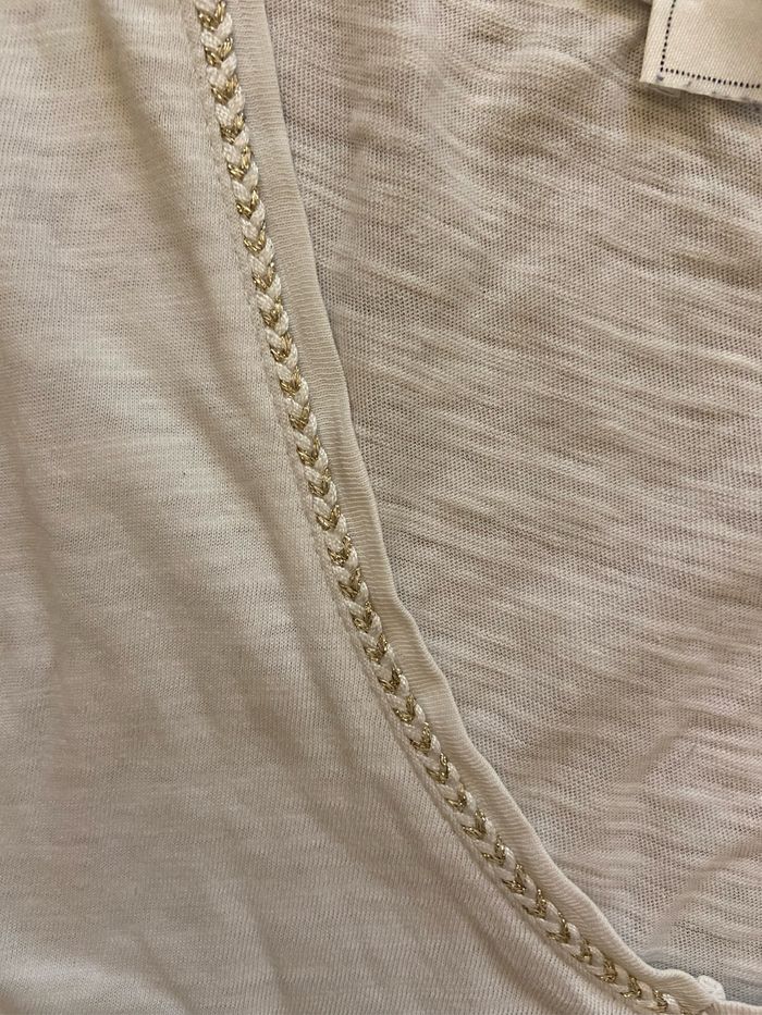 T-shirt blanc col V Encolure V tressée doré et blanc Coton elasthane