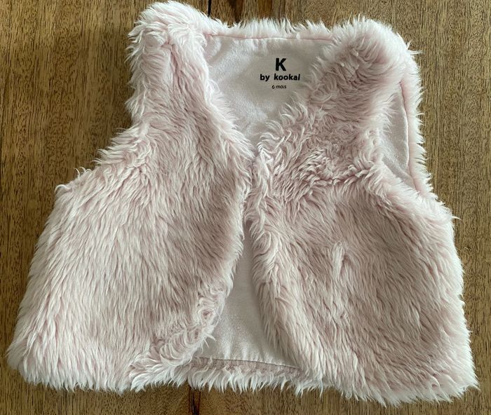 Gilet avec un bouton et un élastique. Sans taches 100 % polyester et la doublure100 % coton.
