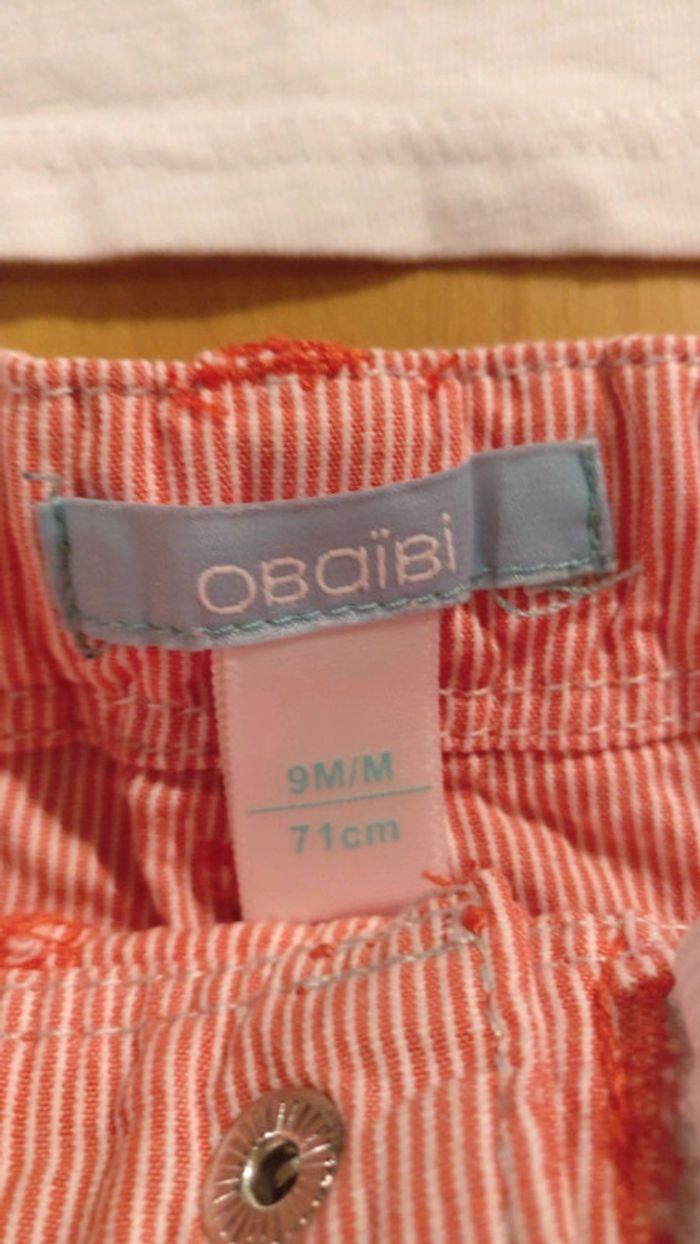 Ensemble short/T-shirt rayé rouge et blanc/blanc taille 9 mois obaibi - photo numéro 2