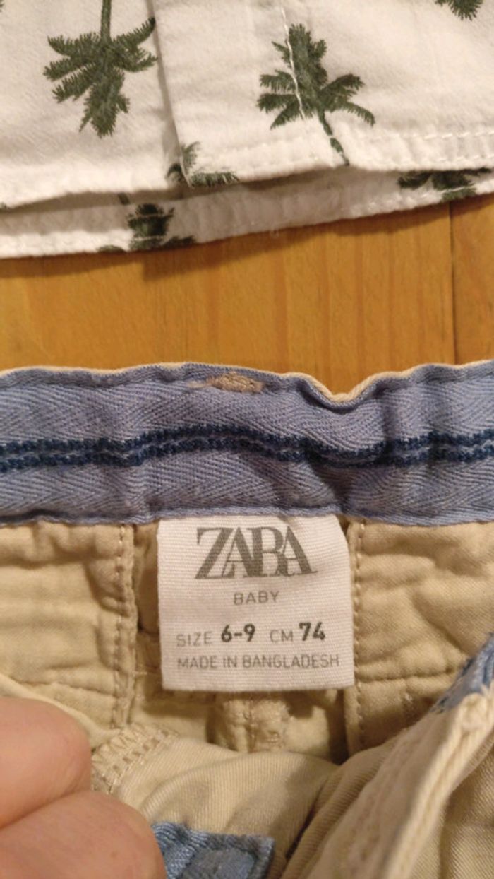 Ensemble chemise/pantalon blanc/beige/vert taille 9 mois zara - photo numéro 2