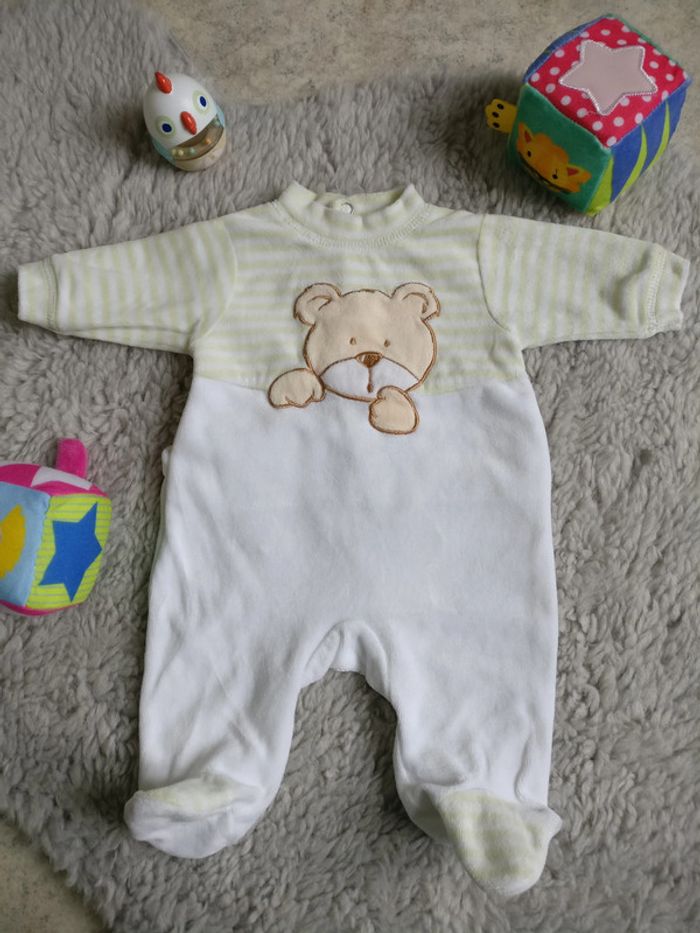 Pyjama velours mixte tête et pâtes d'ourson couleur vert et blanc.