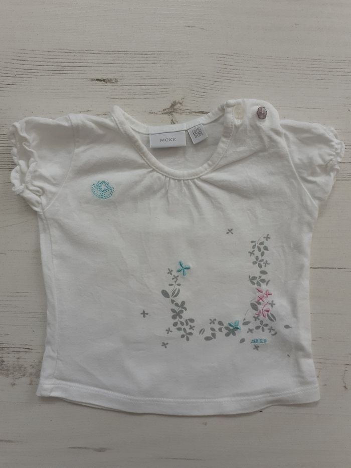 T-shirt fille de marque Mexx ; Taille 0 / 3 mois ; Ton blanc ; En très bon état.