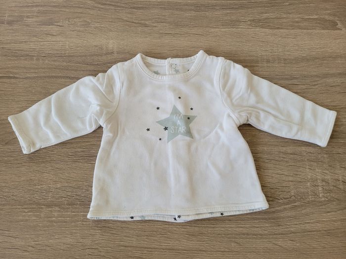 Vend ensemble garçon taille 1 mois en bon état juste des petites tâches sur le tee-shirt (voir photos). Lot comprenant un tee-shirt manches longues, un gilet avec capuche et un pantalon. Marque Vertbaudet, Orchestra et Kiabi.