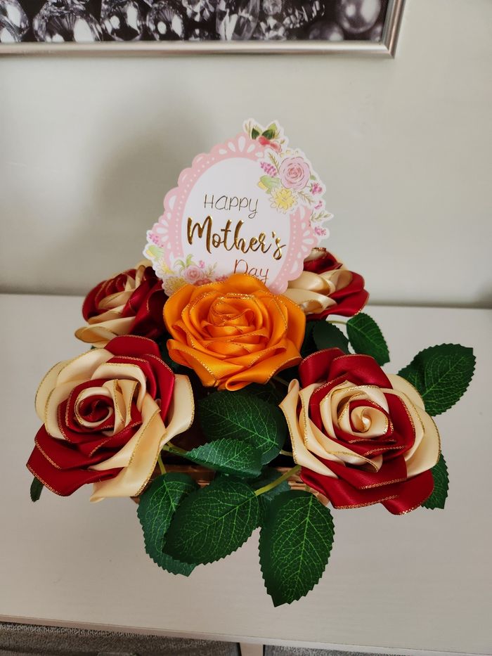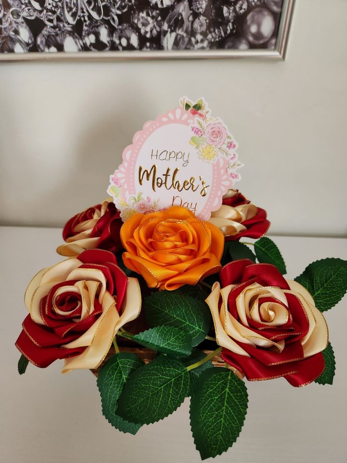 Composition florale Fête des Mères Un.bijou et un mini parfum.sont cachés dans le pot