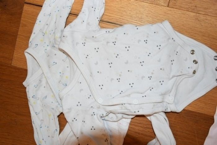 Je vends ce lot composé de 9 bodys (7 à manches longues et 2 à manches courtes) Ils sont en très bon état. Je donne en plus 2 bodys qui sont un peu tâchés au niveau du col (dernière photo) Ils sont de taille 3 mois