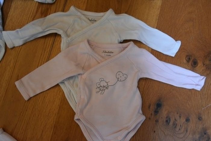 Je vends ce lot composé de 9 bodys manches longues 4 sont de marque petit bateau 2 de kimbaloo 1 de kitchoun 2 sans marque Ils sont en très bon état Ils sont de taille 1 mois