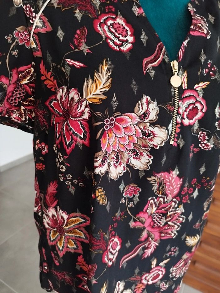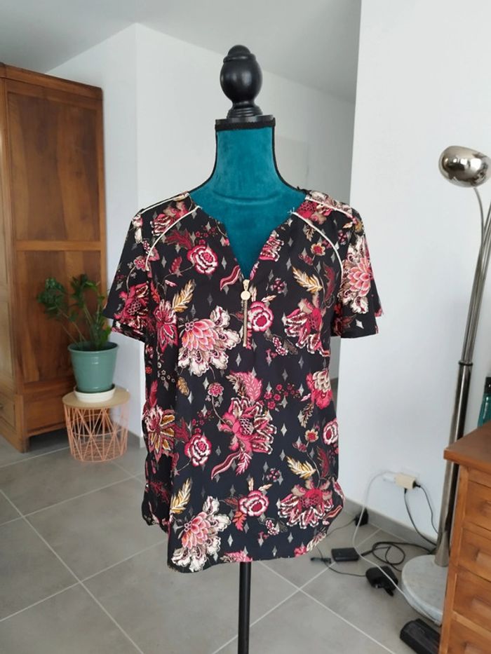 Jolie blouse Lolaliza 38 Noire avec motifs fleuris Col V Manches courtes Ravissante 😍 #lolaliza #lolaliza38 #blouse38 #tshirt38 #femme38 #blouse #tshirt #blouselolaliza #blouselolaliza38