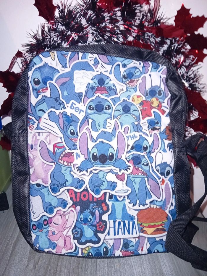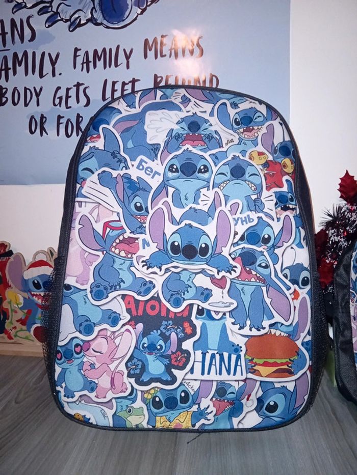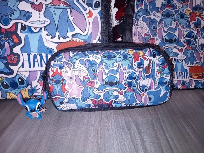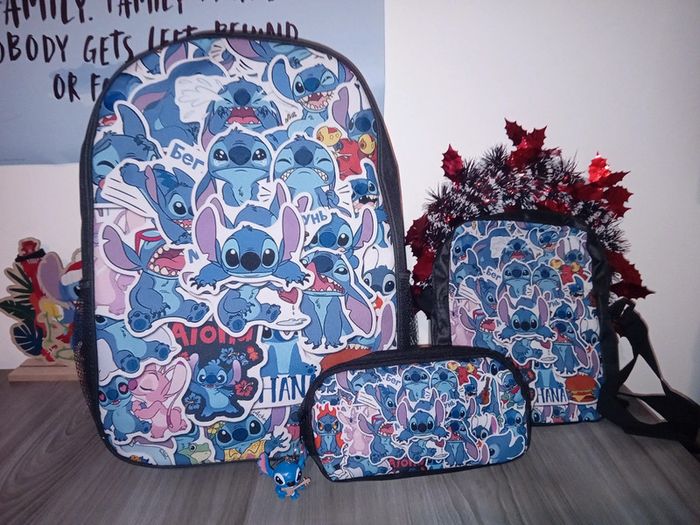 Lot 3 pièces stitch Neufs + 1 porte clefs neuf 1 grand sac à dos dimentions 42cm par 30cm avec ( 2 fermetures sur le dessus, 2 compartiments intérieur, dos renforcé, Sangles réglages et 2 pochettes à petite bouteilles d'eau ou canette sur chaque côtés) 1 pochette dimentions 23cm par 20cm avec ( 1 fermeture sur le dessus et 1 compartiment de rangement, 1 pochette derrière avec fermeture, sangle réglable) 1 trousse taille classic avec 1 fermeture sur le dessus et 1 porte clefs stitch Le tout est neuf Envois mondial relais, shop2shop ou relais colis
