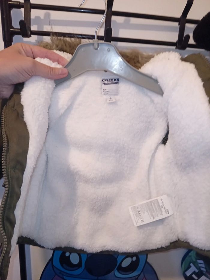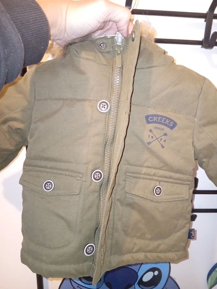 Manteaux entièrement NEUF Creeks 6 mois garçon Intérieur polaire tout doux Couleur kaki Fermeture à zip + boutons sur le devant