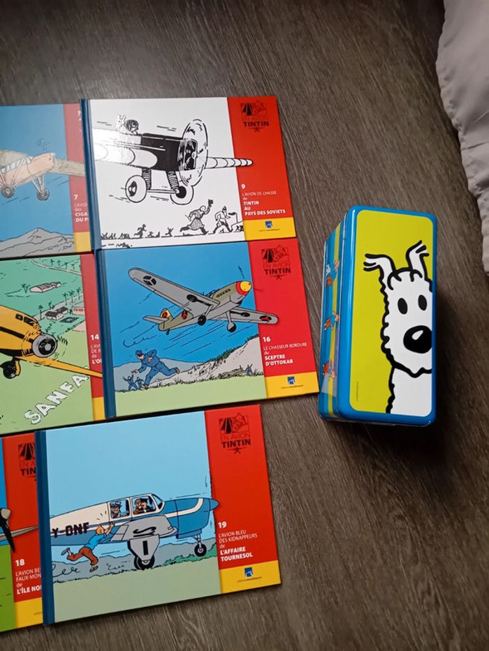 Lot de 11 livrets tintin + 2 boîtes métalliques Numéros 1,4,7,9,10,11,14,16,17,18,19 Le tout en tbe