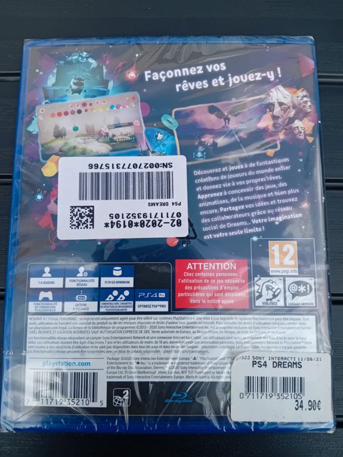 Jeux Dreams sur ps4 Neuf sous blister Valeur magasin 34€90 Envois mondial relais, shop2shop ou relais colis