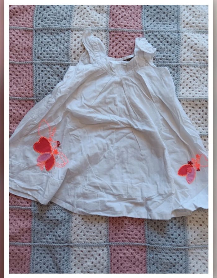 Jolie robe avec papillons 23 mois Marque jean bourget 1 petite tache derrière, sinon en très bon état #2ansmarj901