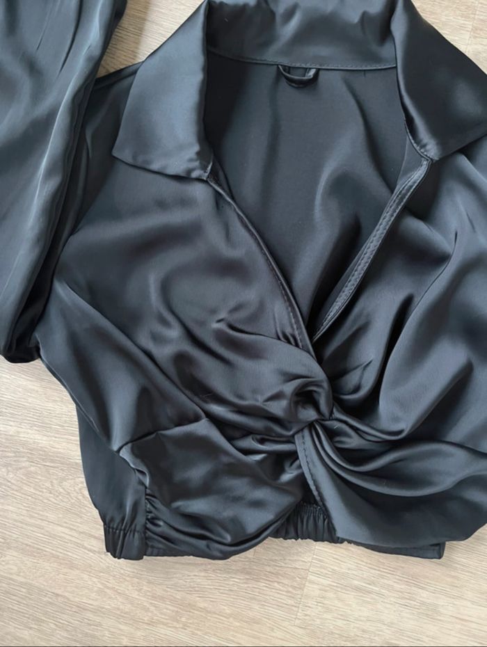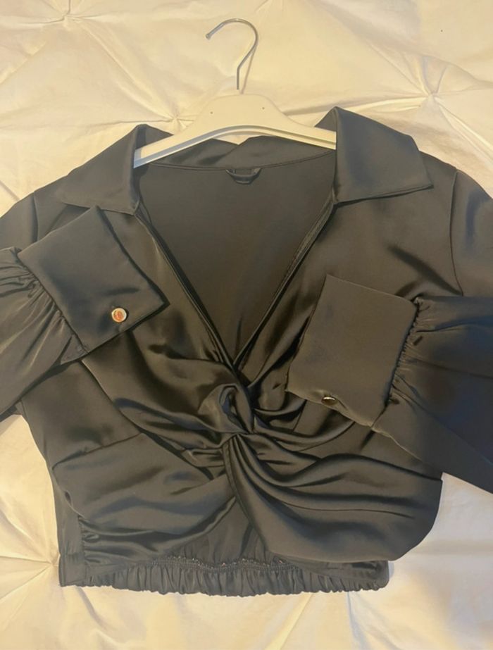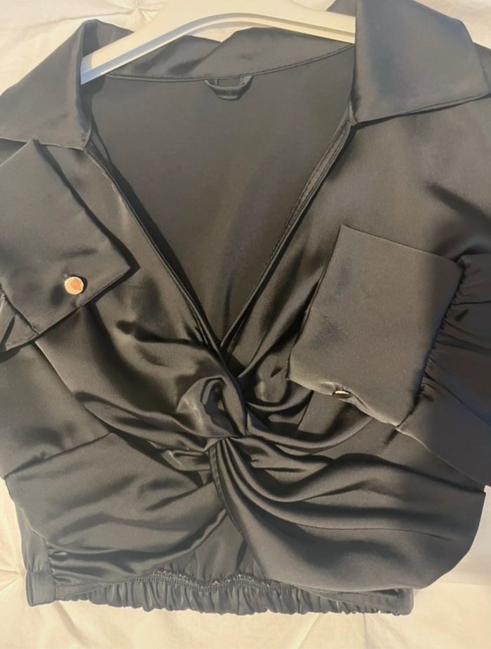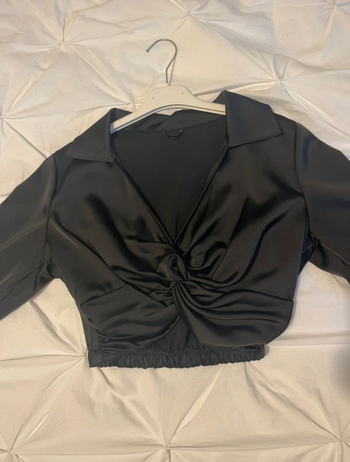 Top court manche longue, style matière satin, Taille unique (peut convenir à un M Max) Aliz’shop Neuf sans étiquette