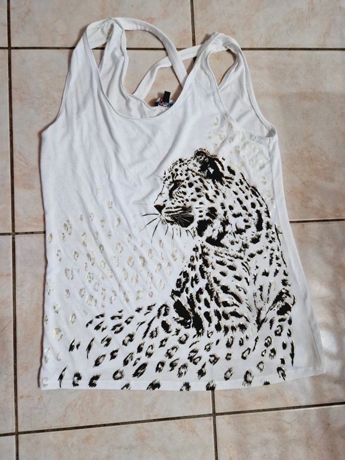 Tee shirt morgan taille M 38 bmanc léopard