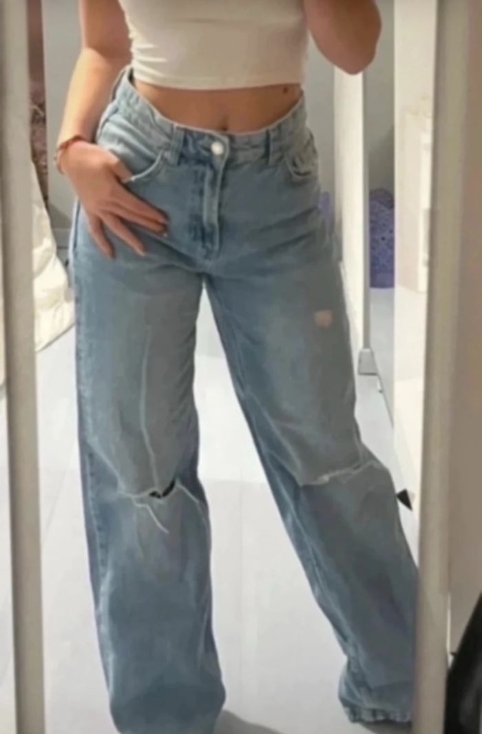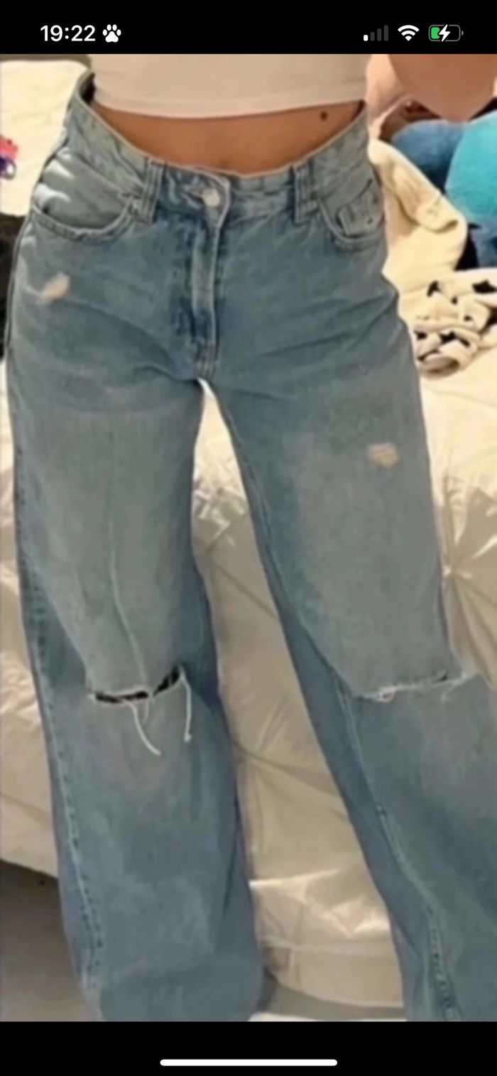 Jean large troués Wide leg 90’ Taille XS Très bon état Bershka