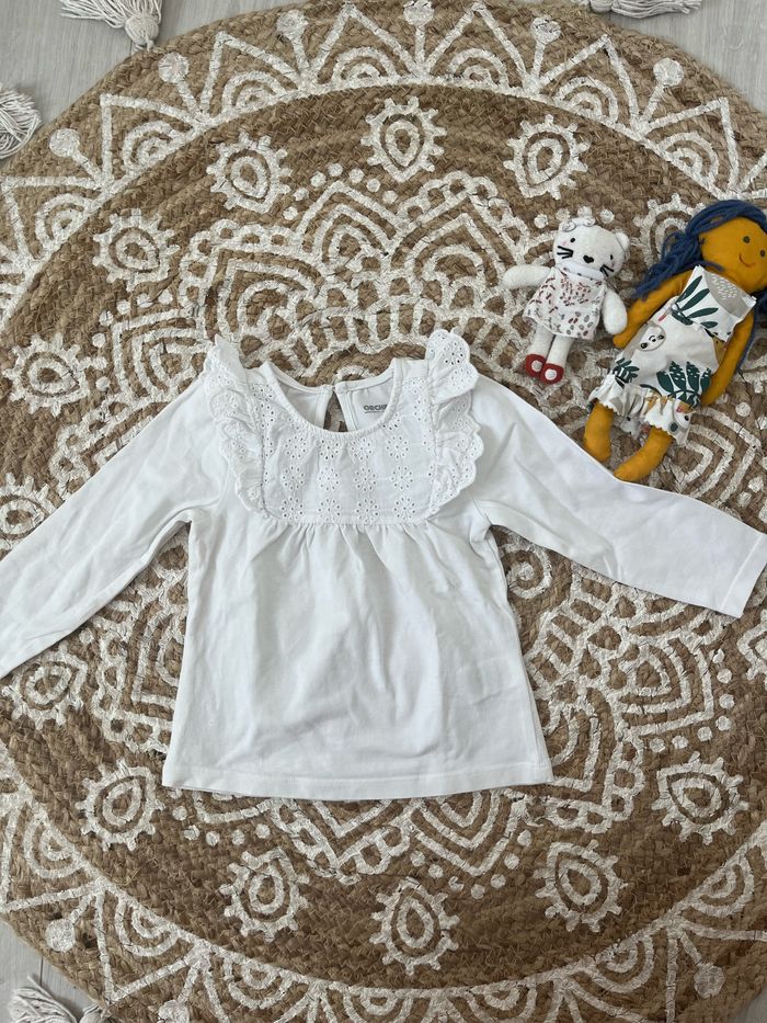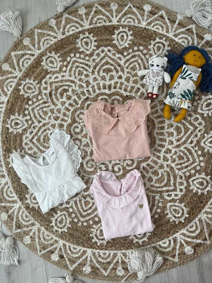 Bonjour, Lot de 3 t-shirt manches longues Seul la blanche a été mise 2 fois sous une robe salopette les 2 autres sont totalement neufs Taille 18 mois 80 cmt 2 orchestra et une du pareil au même
