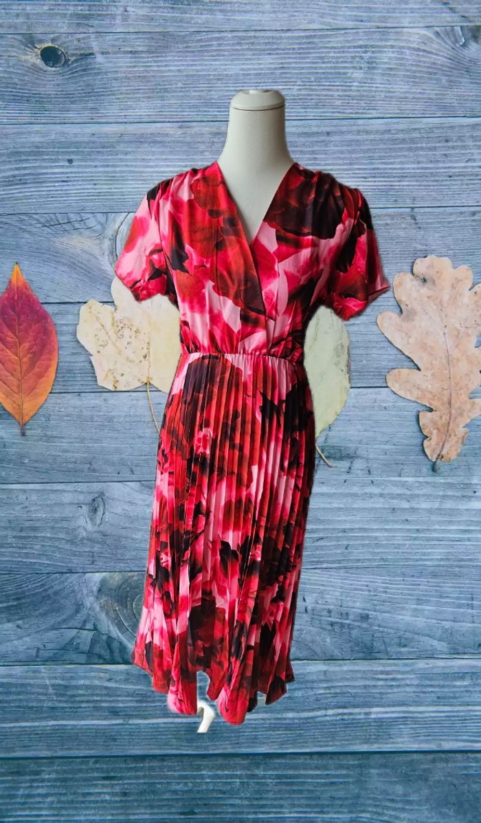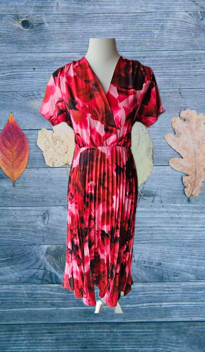 Robe longue plissée fleurie fushia De marque boutique independante Taille M Tres bon état ( portée 1 fois) 100% polyester Aisselles à Aisselles : 44 cm Hanches: 46 cm Longueur : 115 cm Élastique à la taille Décolleté col v