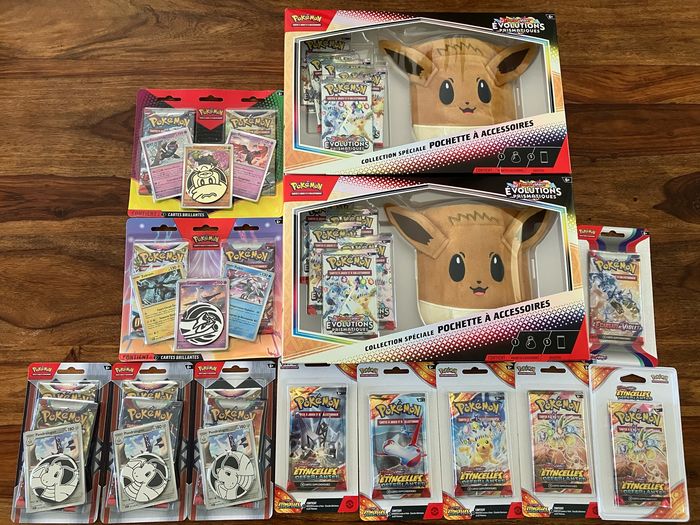 Le lot comprend : • 5 booster sous blister étincelle déferlante EV8 (dont 1 art set) • 1 booster sous blister Écarlate et violet EV1 • 2 coffrets Accessoires Évolutions Prismatiques (Pochettes + Boosters) • 1 Duo Pack Origine Perdue / Évolution à Paldea • 1 Duo Pack Star Étincelante / Écarlate & Violet 1 • 3 Duo Packs Astres Radieux / Écarlate & Violet 1 État : Tous les produits sont neufs et parfaitement scellés, sauf légers défauts : voir photos. Pas d'échange. Envoie mondial relay ou remise en main propre dans le 34 oule 30 Envoi rapide et protégé