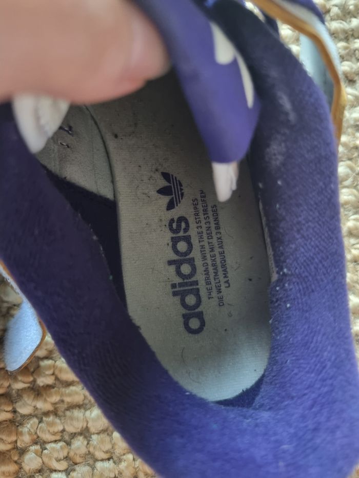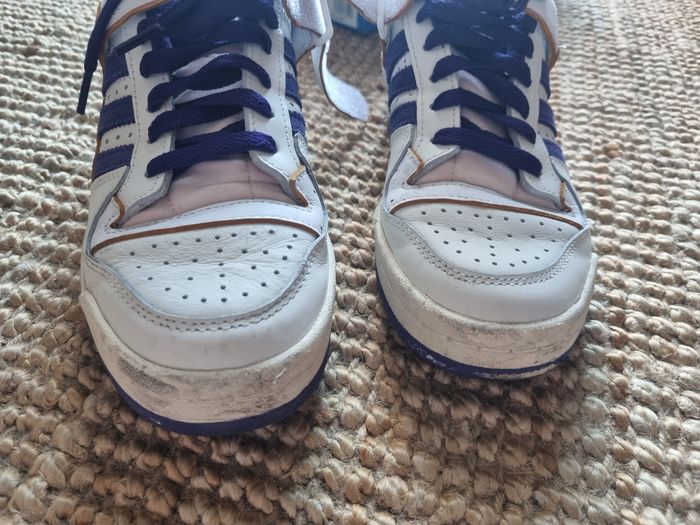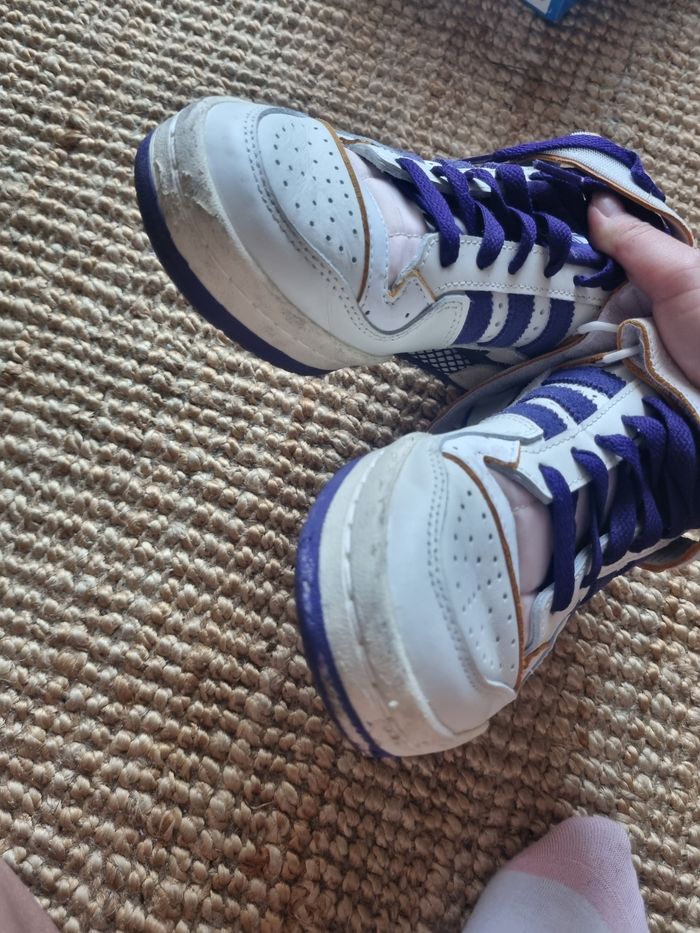 Paire taille 38 Adidas Forum 84 Low. Nécessite un bon coup d'entretien mais peu portée (5 fois max). Bien regarder les photos. Le violet part un peu sur l'avant (dernière photo).
