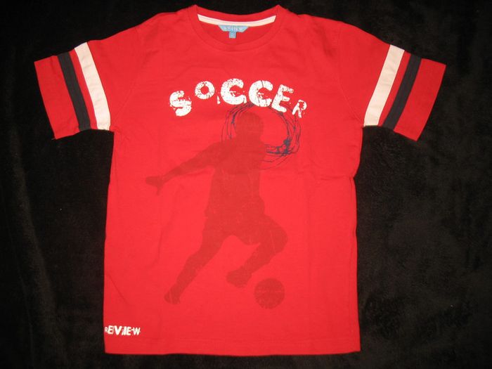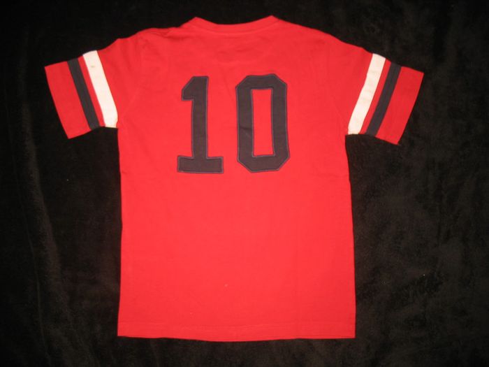 TEE SHIRT MC ROUGE GARÇON "REVIEW KIDS" - 8 ANS - n°10 Tee Shirt à manches courtes rouge - Col rond - Motif footballeur et écriture blanche devant - Chiffre 10 brodé dans le dos - Bandes blanche et bleu marine sur les manches - Matière : 100% coton. Article d’occasion en très bon état - Sans Trou - Ni tache - Lavé et repassé pour la vente - Souvenir d'Allemagne. Possibilité d'envoyer d'autres photos sur simple demande. Allez voir mes autres ventes, je vide les placards. Beaucoup de vêtements de marque et beaucoup de jouets. Maison non-fumeur - Sans animaux. Réduction lot activée. Remise en mains propres ou possibilité d'envoi au tarif en vigueur à votre charge. Retour Refusé. Pour tout renseignement, n'hésitez pas à me contacter, je répondrai volontiers à vos questions. Réponse Assurée. Pour Consulter mes autres annonces tapez Nathg2210.