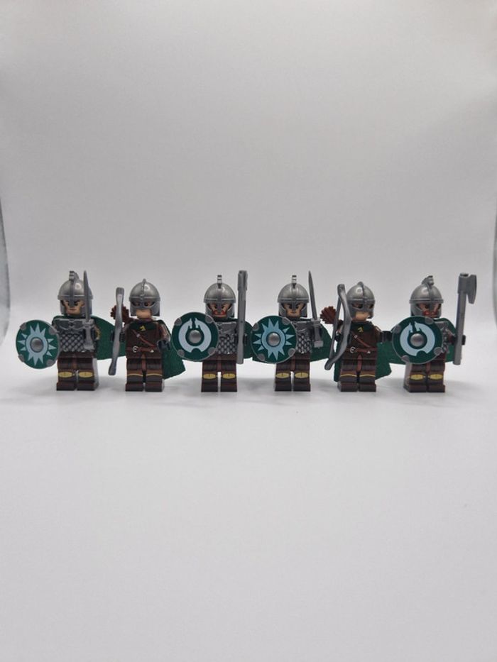 Figurines type lego 6 guerriers du rohan seigneur des anneaux - photo numéro 1