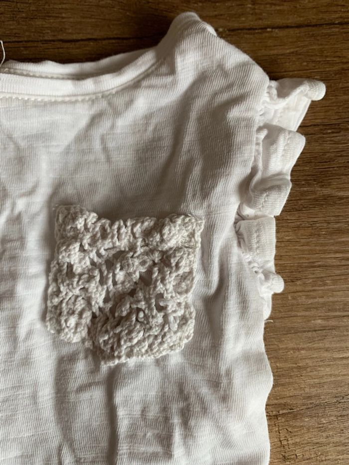 Lot composé de : - t-shirt mc Gemo blanc avec poche en broderie anglaise et volants aux manches, pressions dans le dos - un sweat beige vertbaudet style matelassé à volants - un pantalon paperbag corail Kiabi Le tout est en parfait état peu porté #bébéfille3mois