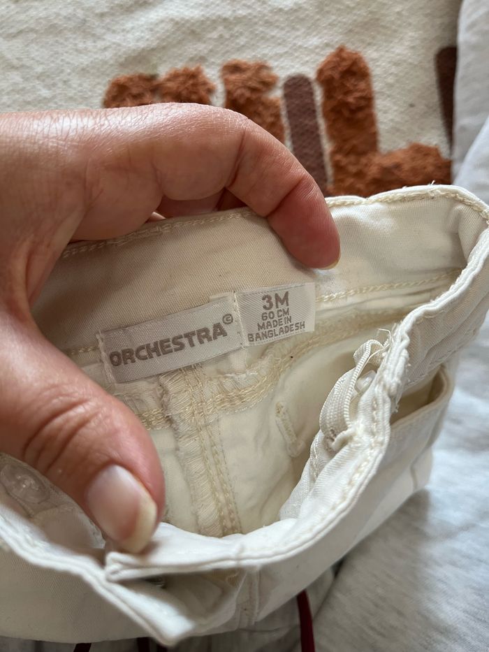 Pantalon à couleur crème de chez orchestra en très bon état Reglable à la taille avec bouton Dressing rangé par taille & réductions sur les lots : #mel67260_3mois Envoi rapide et soignée :)