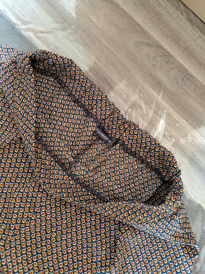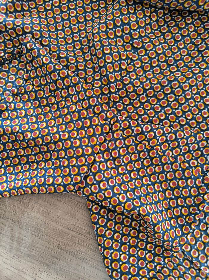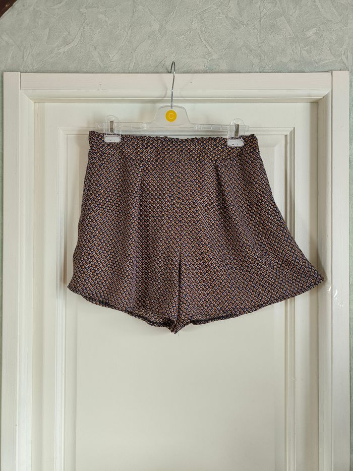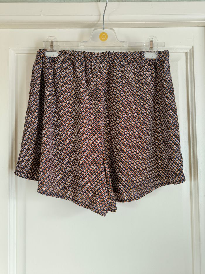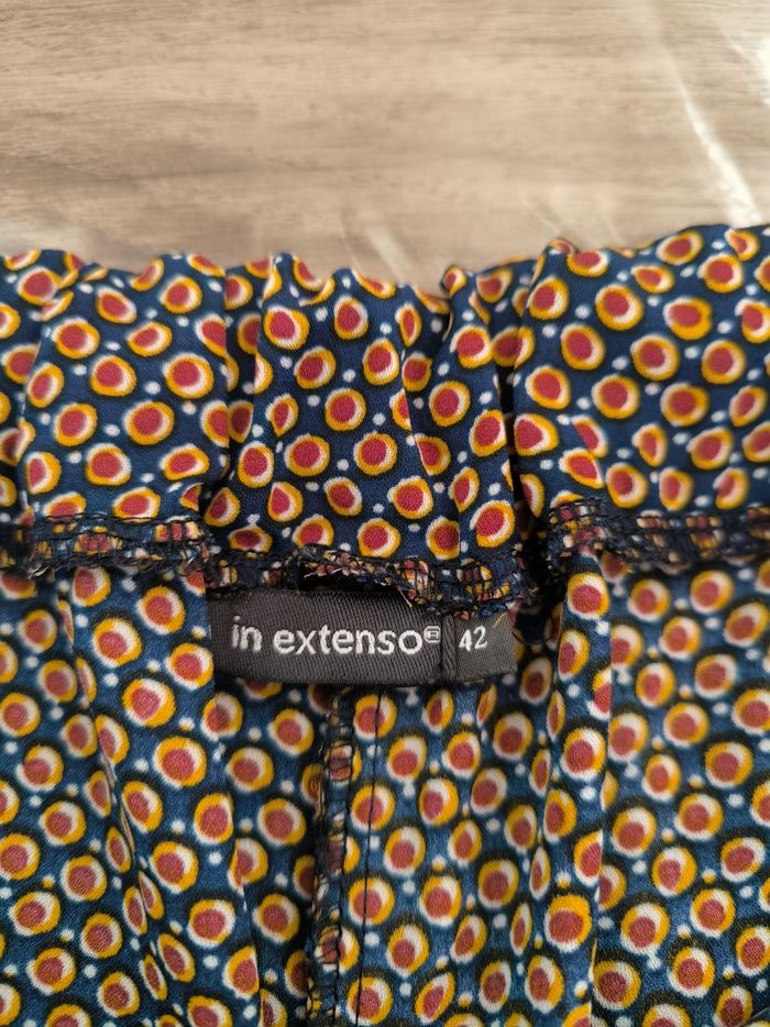 Short Marque In Extenso Taille 42 • Coloris marine, blanc, orange, bordeaux • Imprimés ronds • Taille élastique sur l'arrière • Tissu fin, fluide Largeur taille non étirée : 38 cm Largeur taille étirée au maximum : 48 cm Longueur totale : 38 cm Longueur entrejambe : 10 cm Largeur bas des jambes : 40 cm En très bon état #evelyne_taille_42