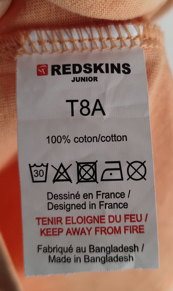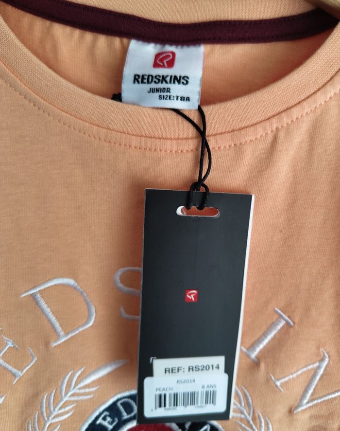 🧒 T-shirt à manches courtes orange avec logo brodé. 🧒 Taille 8 ans 🧒 Marque : Redskins Junior 🧒 Neuf avec étiquette