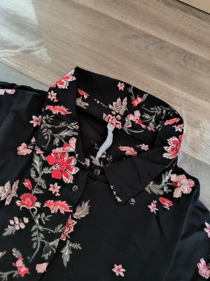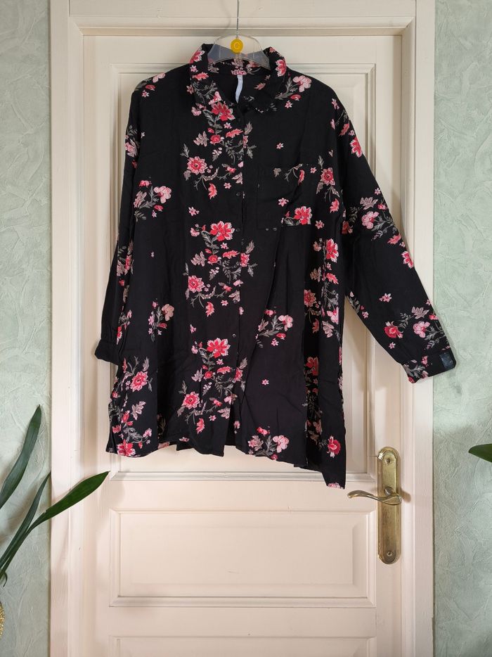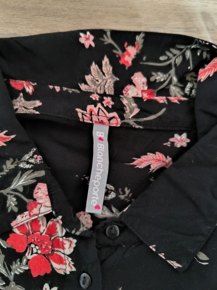 Chemise longue/robe chemise à manches longues Marque Blancheporte Taille 42 • Coloris noir, rose, vert • Imprimés fleurs • Poche supérieure • Fermeture par boutons • Tissu fin, fluide Largeur épaule à épaule non étirée : 43 cm Largeur épaule à épaule étirée au maximum : 50 cm Largeur aisselle à aisselle non étirée : 55 cm Largeur aisselle à aisselle étirée au maximum : 62 cm Longueur manche : 56 cm Longueur totale : 78 cm Longueur aisselle : 54 cm En très bon état #evelyne_taille_42