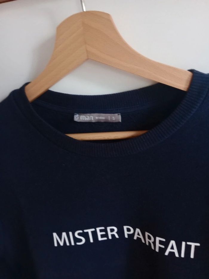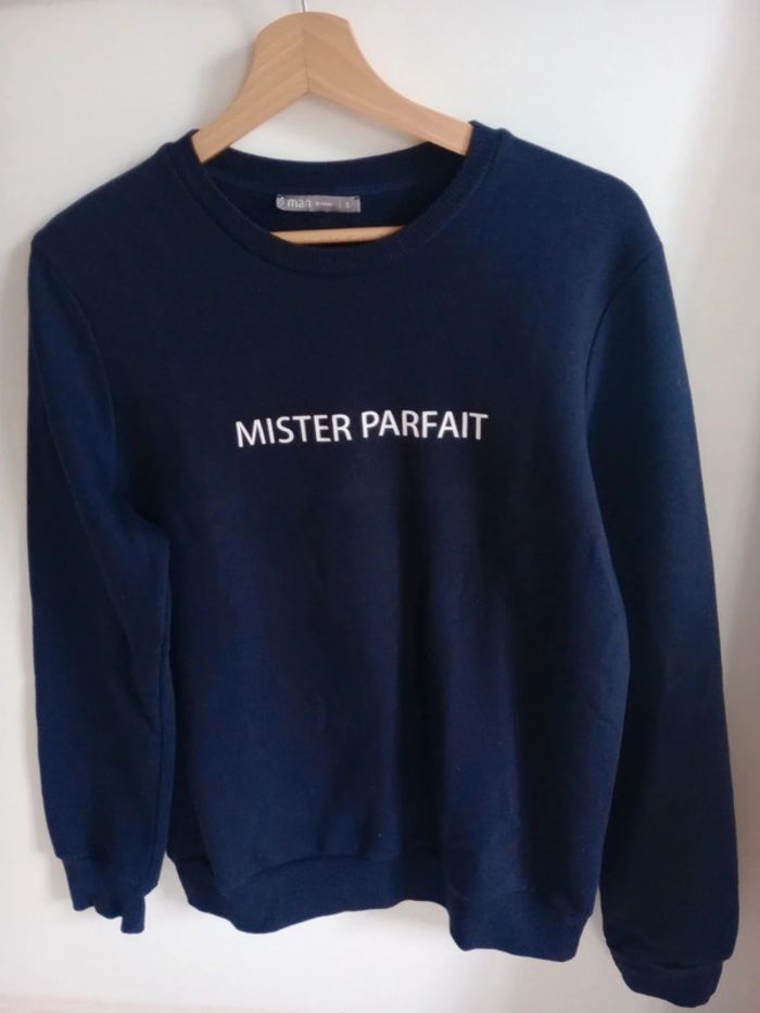 Sweat à col rond et message " Mister parfait " Intérieur doux Aisselle 56 cm Épaule 44 cm longueur 67 cm #carineleray_homme