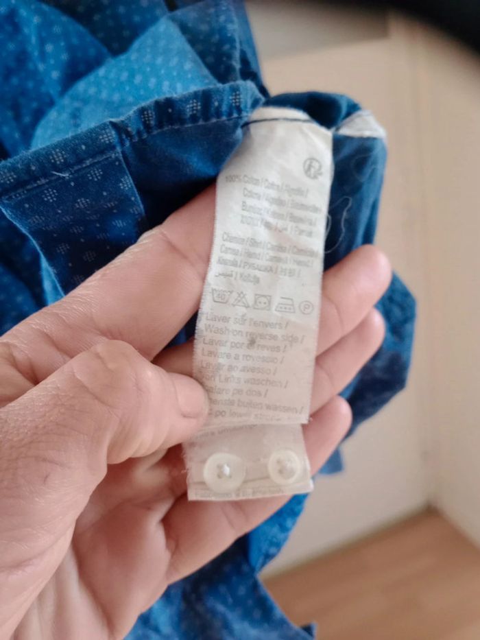 ​Chemise pour homme de la marque Kiabi en taille S (37/38). ​Couleur : Bleu moyen avec un micro-motif géométrique (petits points blancs) pour un effet texturé. ​Matière : 100% Coton (confortable et respirant). ​Coupe : Ajustée, idéale pour un look casual ou plus habillé. ​Détails : Boutons blancs contrastants, manches longues. ​État : très bon état général. À noter que le col est légèrement passé (voir photos) je l'indique donc dans la catégorie bon état Aisselle 51 cm #calomomi_homme ​#kiabi #chemisehomme #tailleS #chemisebleue #modehomme #casual #coton #kiabimen #chemisecintrée #stylehomme