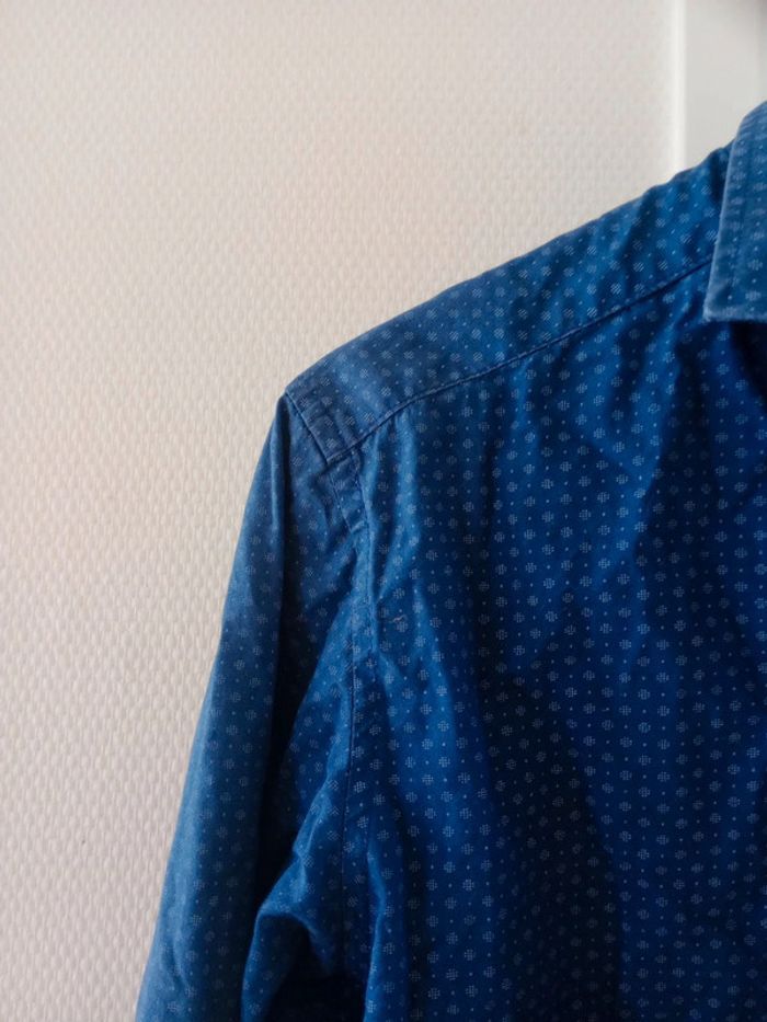 Chemise homme s bleu a motifs blancs c79 - photo numéro 2
