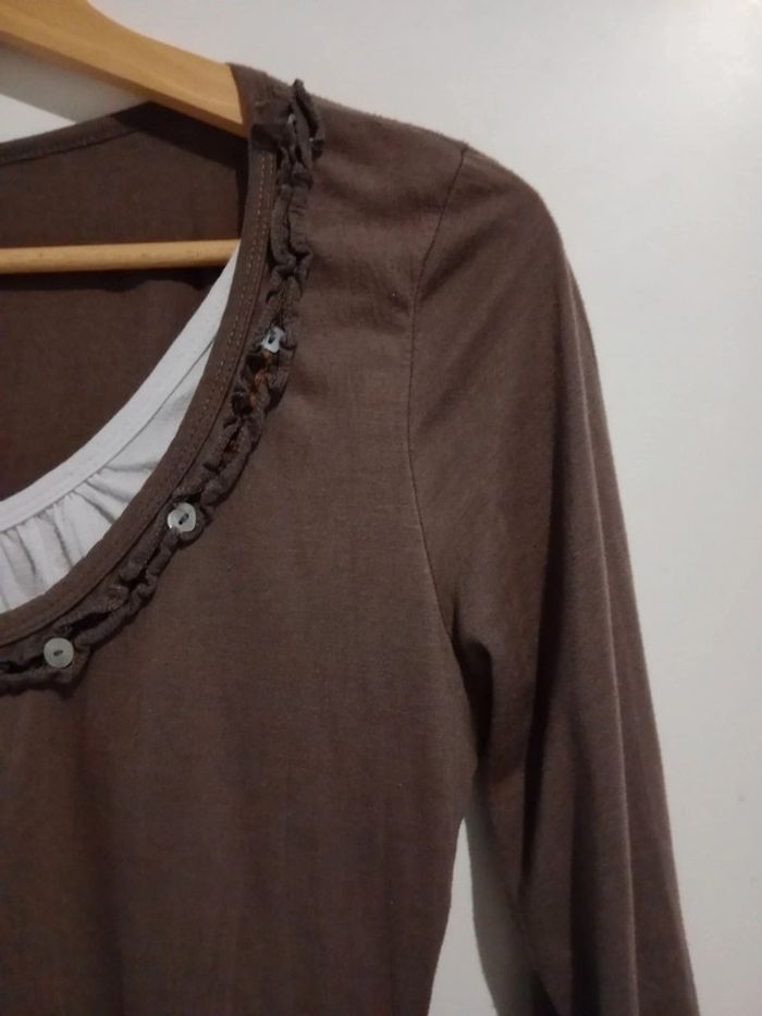 Tee shirt combiné s manches longues marron blancc58 - photo numéro 6