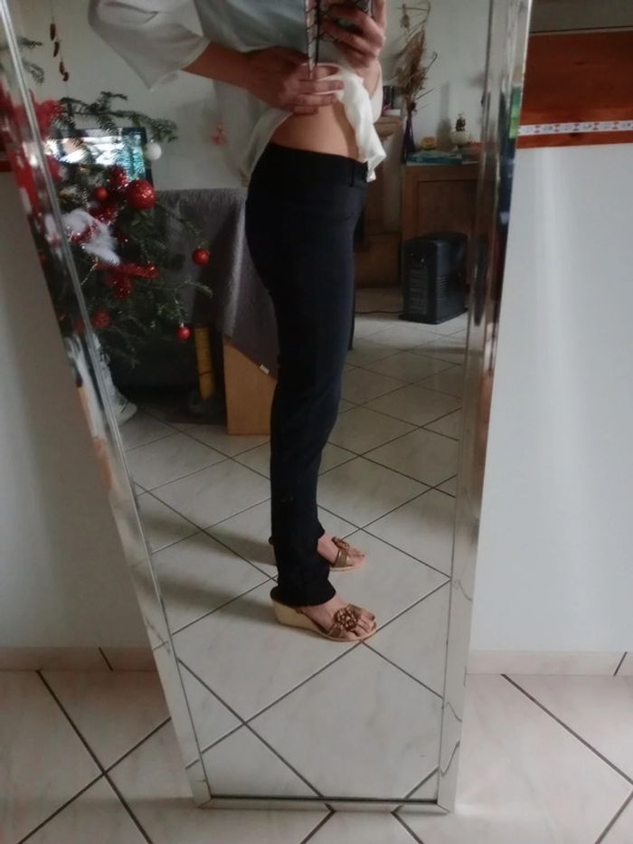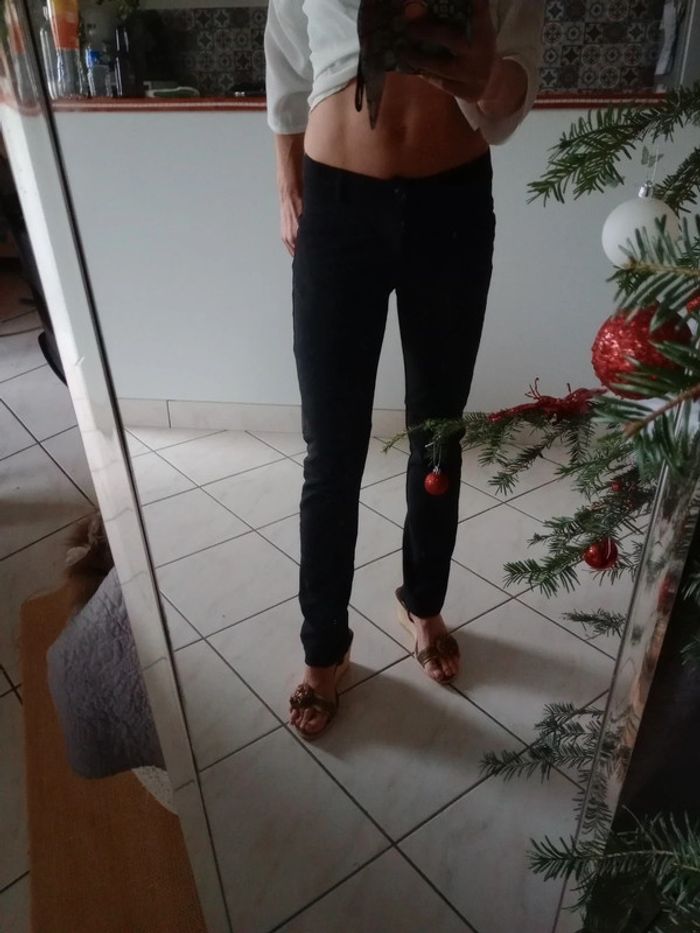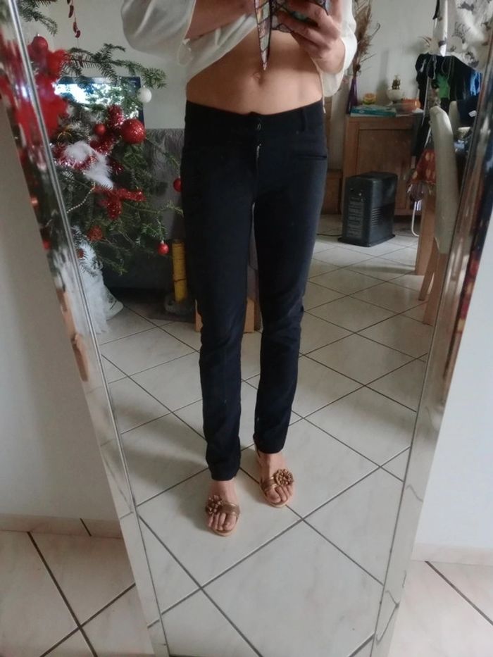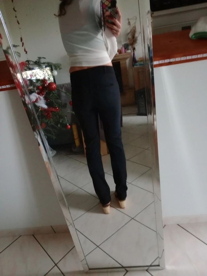 Superbe pièce, impeccablement entretenue 🥰 Pantalon ajusté légèrement côtelé, le tissu est qualitatif, n'en reste pas moins très confortable 😉 quasiment neuf De jolis coutures qui partent du genou pour aller jusqu'en bas Deux fausses poches au niveau des hanches avec une fermeture À l'arrière deux vraies poches #carineleray_femme_36