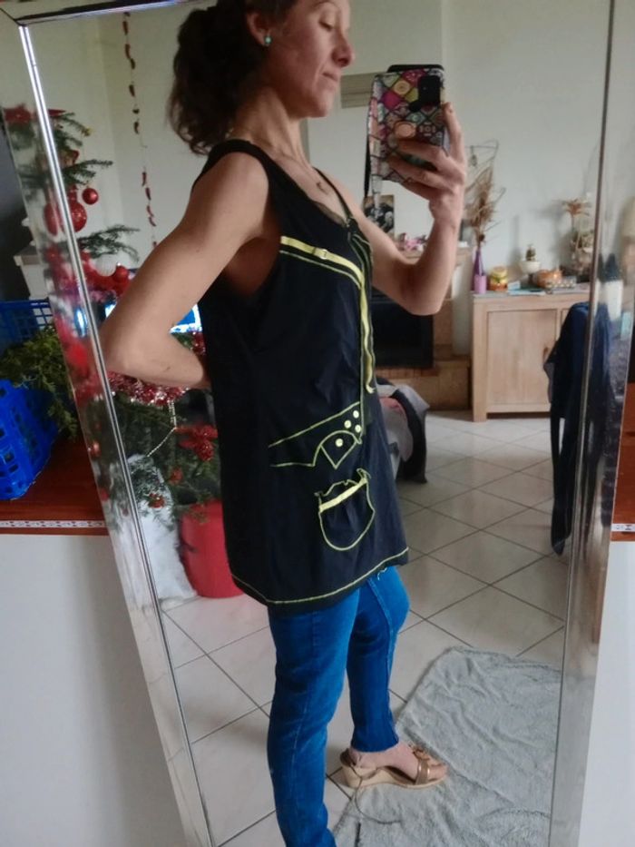 Tunique femme taille 5 noire et verte jaune c57 - photo numéro 10